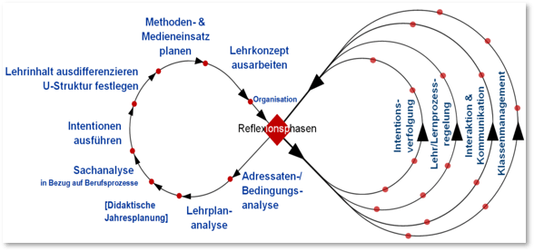 Die Gestaltung von Bildungsprozessen ist immer eine theoriegeleitete, reflektierte, analytisch-didaktisch begründete Planung, Entwicklung, Organisation und Durchführung sowie Evaluation und Reflexion von Lehr-/Lern-Arrangements bzw. Lernräumen.