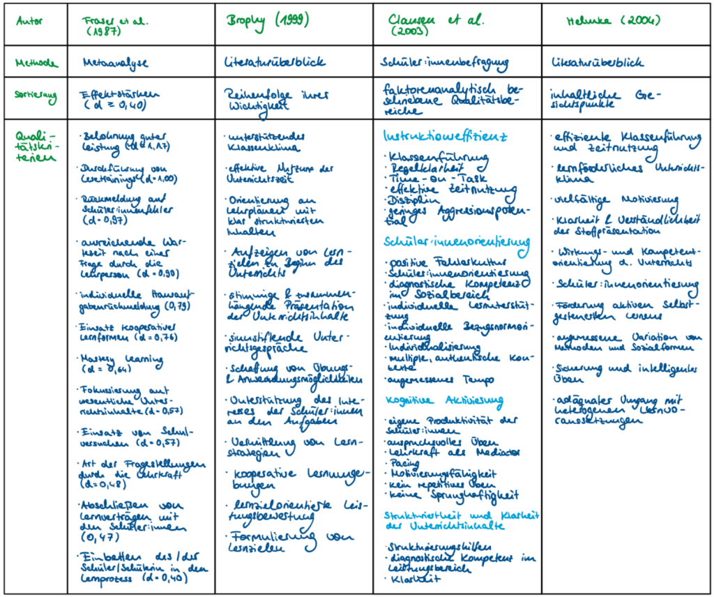 Noch fehlt eine einheitliche Theorie zur Unterrichtsqualität (vgl. Neuhaus, B. 2007).