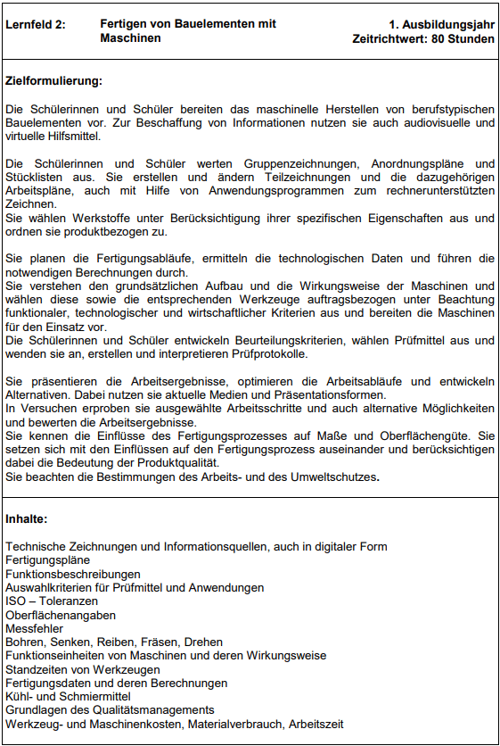 Lernfelder – Kompetenzbeschreibung und Lehrinhalte