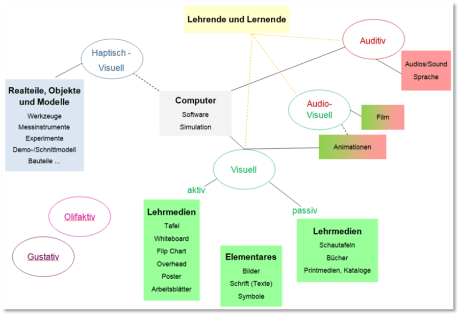- Haptisch, visuell, auditiv, audiovisuell, olfaktorisch, gustativ