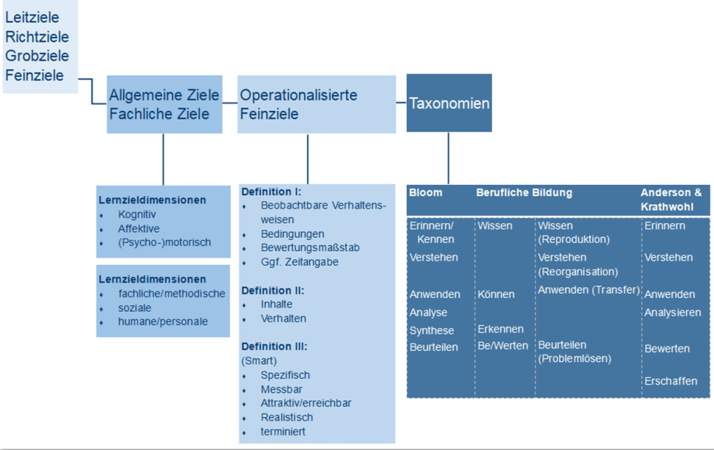 Zu operationalisierten Lehrzielen gibt es verschiedene Ansätze: