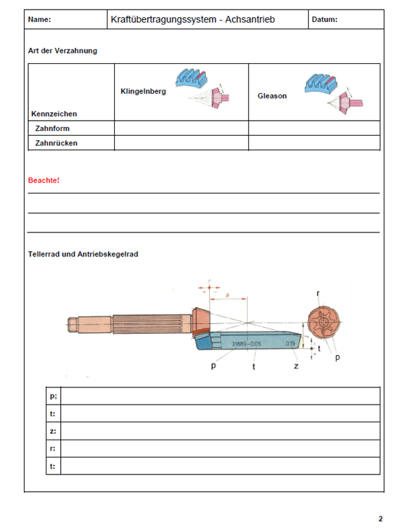 Arbeitsblatt zur Dokumentierung der Lehrinhalte